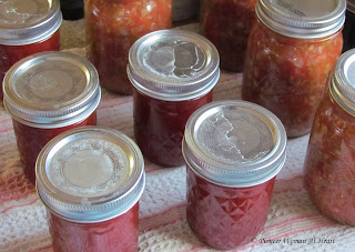 I canned another 2 1/2 quarts of seasoned tomato sauce and another 10 half pint jars of pear jam (23 lbs of tomatoes).