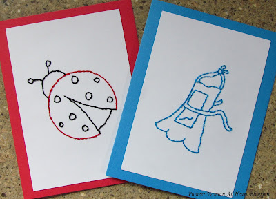 . . .have been working on more stitched cards for the last Farmer's Market in September.  Our sales are down by 50% this year from last.