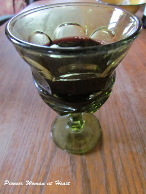A week has passed, and the infused red wine was ready to taste.  I poured Hubby and I a glass just before dinner.