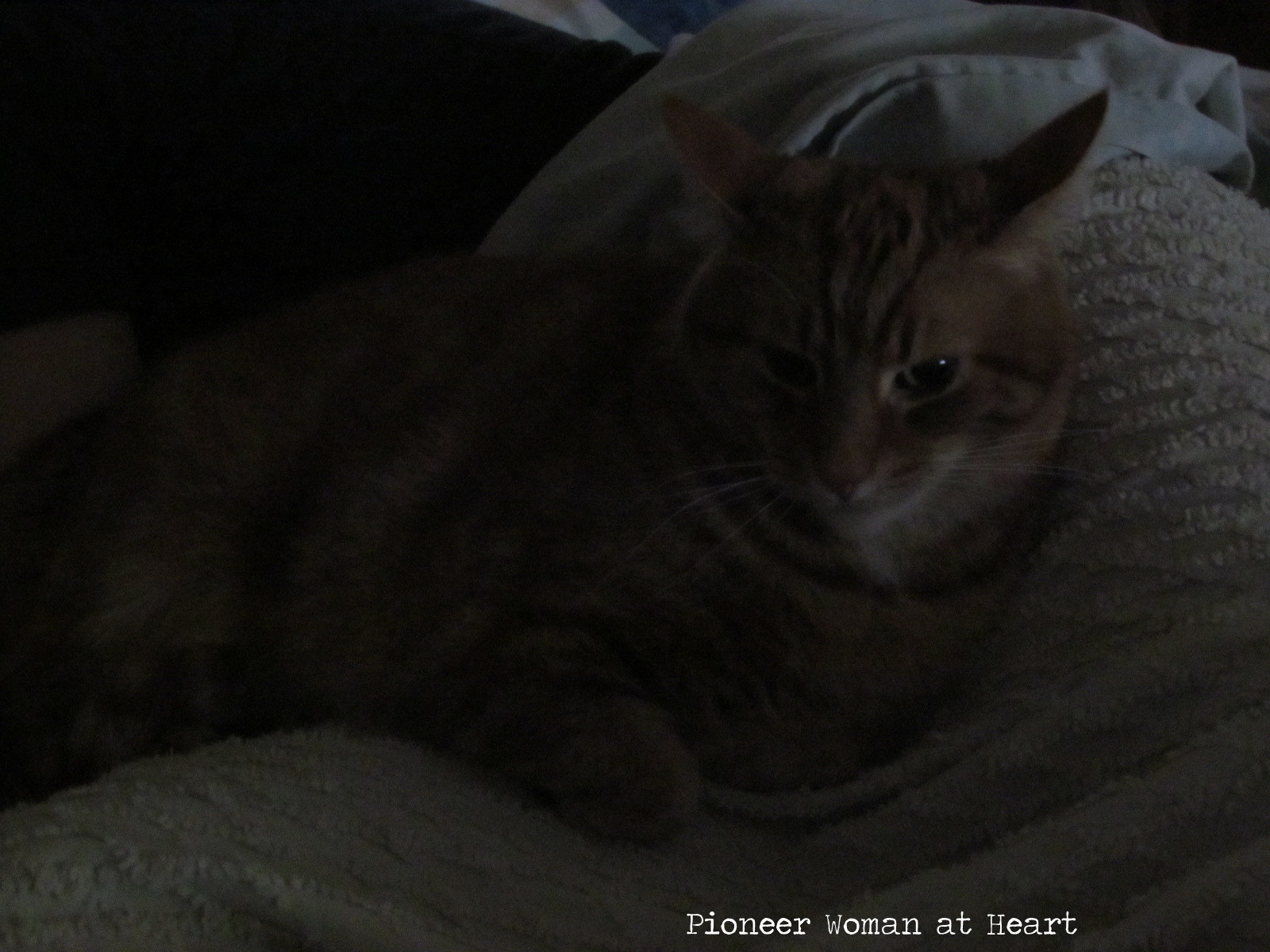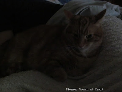 Tiger (aka Dr. Tiggles) is on TLC patrol. He's been curled up by her side, providing love, and healing. His ears are back, as if he was telling me to leave them alone, ha ha!