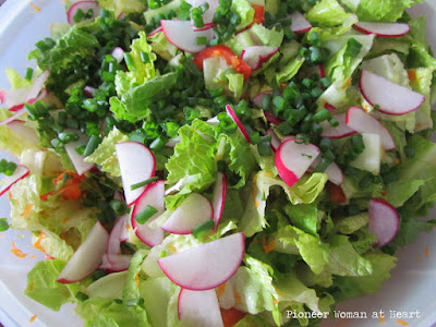 I could not wait any longer for a nice big salad. I went to the grocery store and bought all organic ingredients, and topped it with home grown green onions.